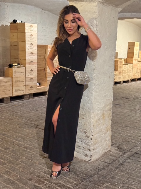 Een lange jurk waarbij klasse en elegantie centraal staan. De kwaliteit geeft wat mee waardoor het niet alleen mooi is, maar ook comfortabel om het te dragen. Door de knopen kan je zelf bepalen hoe diep je de split maakt.